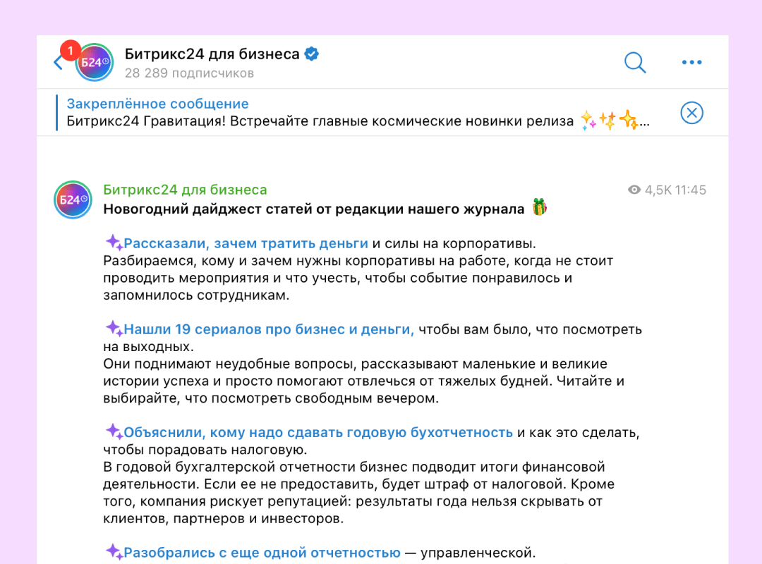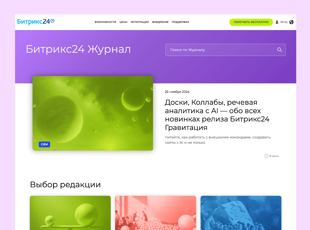 Ваша статья выходит в Битрикс24 Журнале и получает охват через наши каналы: сайт, рассылки и соцсети